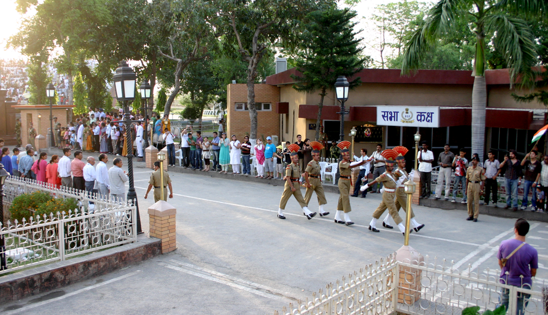 우리는 사원 구경을 마친 뒤, 국기 하강식을 보기 위해 '와가'로 가는 릭샤에 올랐다. 국경에 도착했을 때는 이미 많은 인파가 국기 하강식을 보기 위해 모여있었다. 인도와 파키스탄 국경의 군인들이 진행하는 국기 하강식은 두 나라의 자존심 대결이라 불릴 만큼 긴장감과 위엄 넘치는 쇼였다. 우리나라에서 국군의 날 행사에서 의장대가 앞에 나서 의장 행사를 보여주듯, 이들은 상대국의 군인과 관중들을 앞에 두고 품위와 절도가 갖추어진 포즈를 취하며 자신들의 위엄을 세웠다. 숨죽여 군인들의 행동을 바라보던 군중들은 가끔씩 환호성을 지르기도 했고, 파키스탄과 인도의 군인들은 자신을 지켜보는 관중의 환호를 조금이라도 더 받기 위해 경쟁했다. 군인들의 퍼포먼스가 절정을 향해 나아갈수록 하늘은 점점 붉은빛으로 물들어 갔다. 태양이 완전히 파키스탄의 것이 되었을 때, 국경 하늘에서 펄럭이던 파키스탄과 인도의 국기는 서서히 땅으로 내려왔고 국기 하강식은 그렇게 끝이 났다.