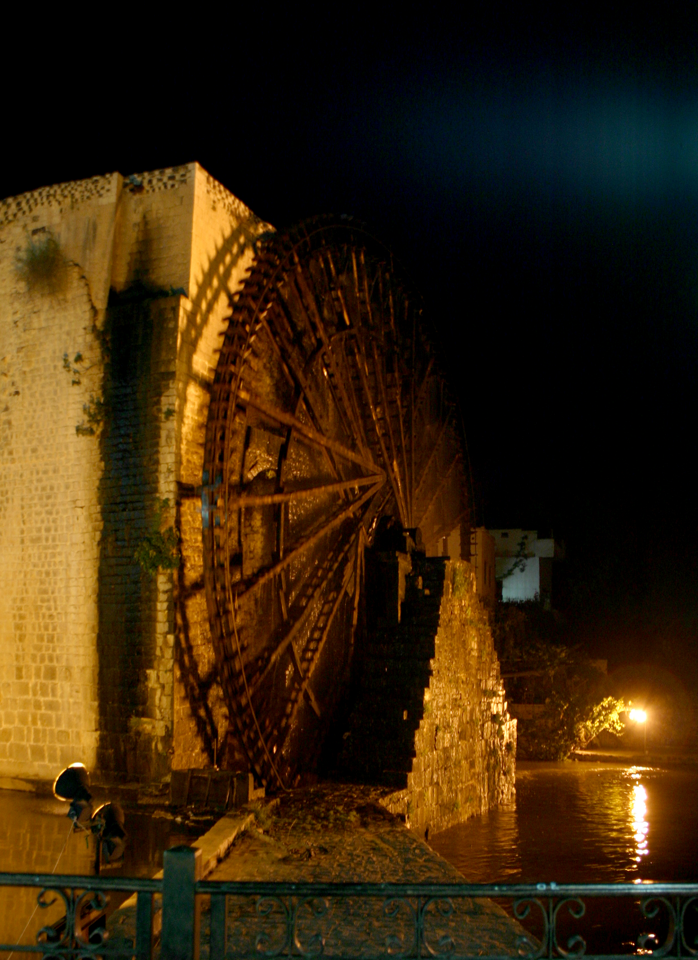 어둠이 깔린 하마 거리에는 사람들이 많았다. 수차 근처에는 카페가 많이 있었고 사람들은 차를 마시며 이야기를 나누었다. 수차가 천천히 돌아가는 거리. 물소리와 함께 하마의 시간은 천천히 흘러갔다.