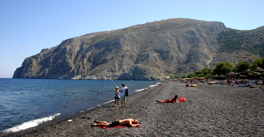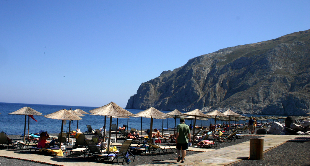 차를 타고 섬을 달리다 보면 한적한 시골 풍경을 만날 수 있는 산토리니는 그냥 보통의 섬처럼 보였다. 하지만 섬의 서쪽 끝 절벽에 걸려있는 아름다운 집들을 보았을 때 다른 섬들과는 다르다는 것을 느낄 수 있었고 동쪽 해변, 소위 '검은 해변'으로 불리는 까마리 비치(Kamari beach)에서 해수욕을 할 수 있다는 것과 아름다운 코발트블루빛 바다에 드문드문 하얀 점들이 떠 다니는 것을 볼 수 있다는 것을 생각하면 산토리니는 '다르다'는 생각이 든다.