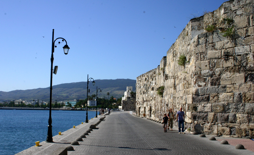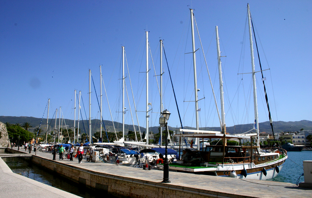 ※ 코스 섬의 해안 도로와 섬 안쪽의 항구. 안쪽의 작은 항구에는 요트들이 정박해 있었다.