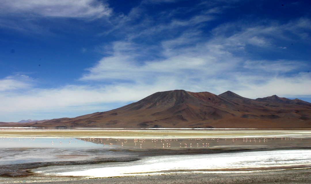 온천에 몸을 담갔을 때 느꼈던 노곤함. 이제 투어가 끝났다는 생각이 들면서 온 몸의 긴장이 풀려왔다. 우유니로 돌아가는 길에 만난 플라멩코와 라마. 그리고 하늘을 향해 솟은 화산들. 지프는 비포장 도로를 달렸다. 우유니로 가는 길에는 작은 마을들이 있었다. 식사를 하기 위해 들른 마을. 무너진 흙담. 풀이 파릇파릇하게 자라 있는 개천에는 물이 흘렀고 라마들이 풀을 뜯고 있었다. 평화로운 마을이었다. 평화. 너무나도 조용해서 숨소리마저 죽여야 할 것 같았던 마을. 우리 팀의 분위기 메이커였던 에드손은 눈에 보이는 모든 것을 악기로 만들었다. 그는 브라질의 실험적 뮤지션이었고 다양한 도구로 소리를 만들고 음악을 만들어냈다.