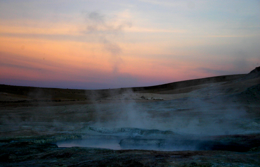 땅에는 곳곳에 큰 구멍들이 나 있었고 그 구멍과 갈라진 땅의 틈새에서 연기들이 치솟고 있었다. 냄새의 원인은 바로 그곳에 있었다. 황산 가스가 포함된 연기가 마구 솟구치고 있는 것이다. 활화산의 흔적들. 이 땅 아래에는 용암이 들끓고 있을 것이다. 땅 속 깊은 곳에서 그것들이 끓고 있다는 것을 이 연기들이 보여주고 있는 것이다. 구멍과 땅의 틈새로 뿜어져 나오는 연기는 산이 살아있다는 증거였다.