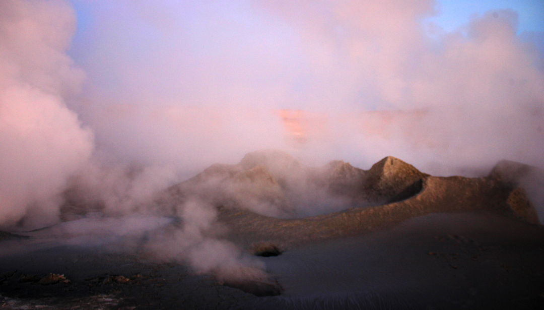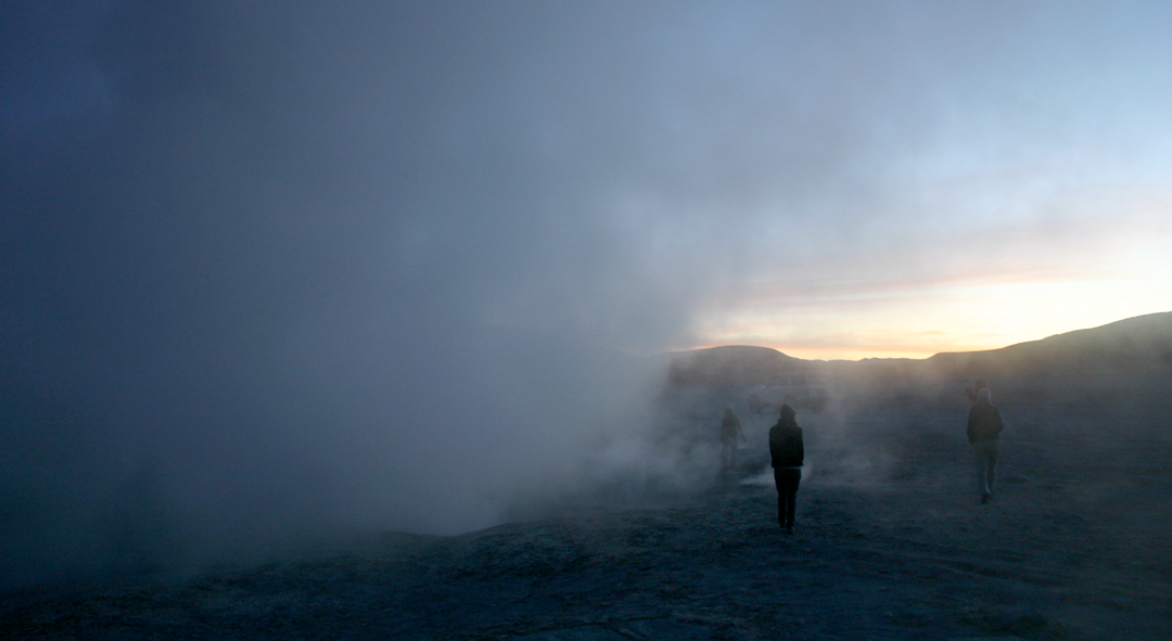 지평선이 붉게 물들기 시작했다. 어둠은 서서히 뒤쪽으로 물러났다. 시큼한 냄새가 코를 자극한다. 한참을 달려온 지프는 조금씩 속도를 줄였다. 냄새는 더욱 강렬해진다. 온 사방에 하수구 냄새가 진동을 한다. 앞쪽 저 멀리 하얀 연기가 뿜어져나오고 있다. 지프는 멈춰 섰고 우리더러 저쪽으로 가보라고 한다.