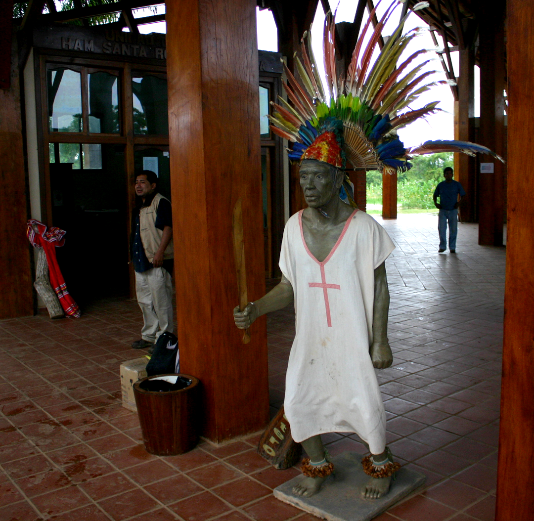 ※ 아마존 지대에는 군데군데 작은 마을들이 있었다. 작은 마을에서 식사를 하기도 했다. 아마존 원주민 마을의 휴게소에 있던 마네킹(오른쪽).