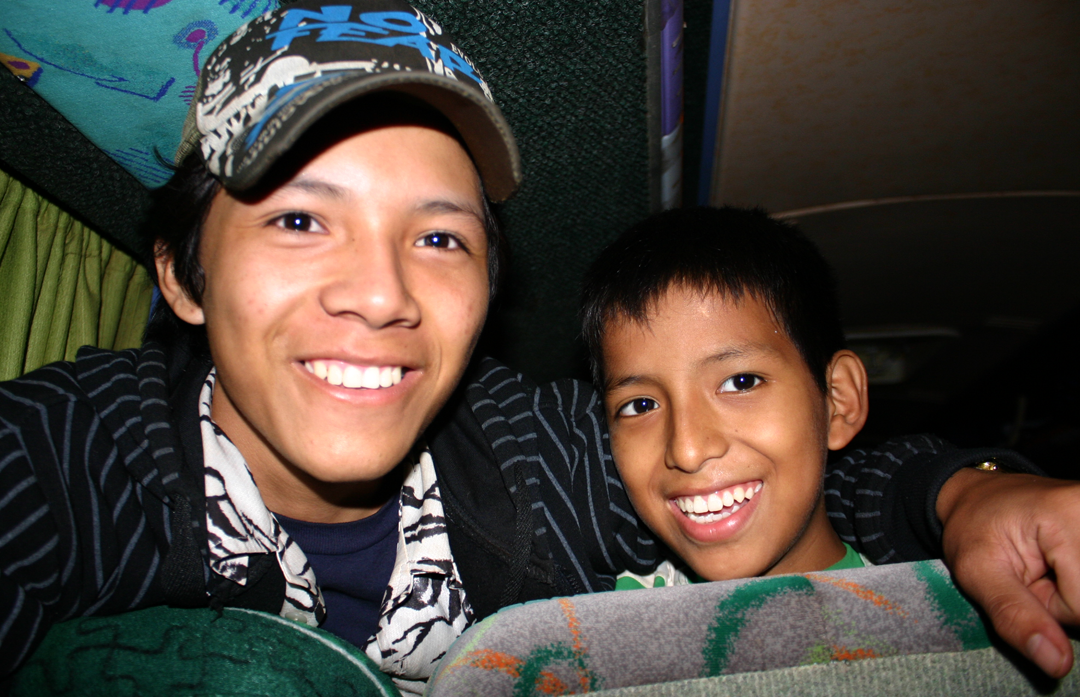 ※ 50시간 만에 도착한 구아야라메린. 얼마나 기쁘던지. 버스 안에서 나를 놀리던 볼리비아 꼬마들(오른쪽).