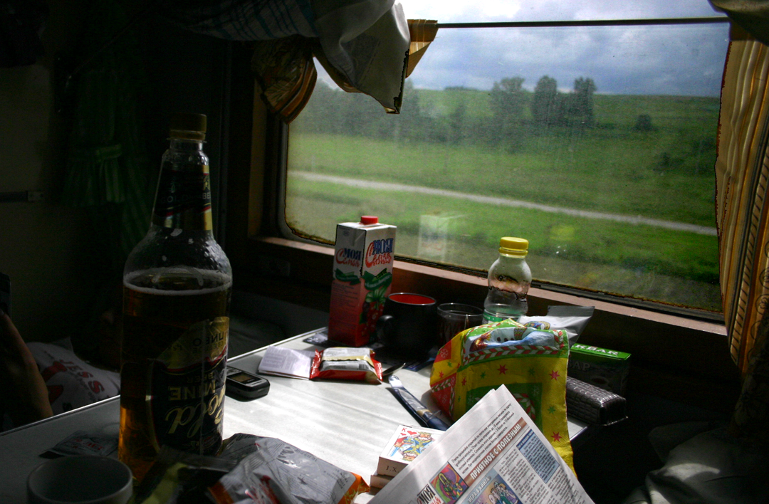 똑같은 풍경의 무한 반복 속에서 시간의 흐름을 도저히 가늠할 수가 없었다. 약간의 변화가 있다면 밖이 어둡거나 밝거나 둘 중 하나라는 것. 기차의 테이블에는 항상 먹을 거리들이 펼쳐져 있었고 잠에서 꺠어날 때 마다, 깨어난 시간이 언제가 됐든 친구들과 인사를 나누며 맥주 한 잔씩을 들이켰다. 배가 고프면 컵라면을 먹거나 빵을 먹거나 그도 아니면 햇반을 데워 먹었다.