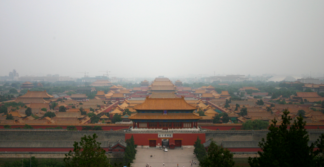 숙소는 여행자 거리로 불리는 대책란가(大柵欄街)의 근처에 있었다. 바로 그 근처에 천안문 광장이 있다. 숙소에서 나와 광장에 서면 반대편 끝에는 천안문(天安门)과 마오쩌둥의 초상화가 보였다. 세계에서 가장 크다는 이 광장을 몇 번이고 가로질렀다. 나는 천안문을 지나 북쪽으로 걷는다. 천안문 광장의 북쪽, 자금성 너머에 높이 47.5미터의 '인공산' 징산공원(경산공원/景山公园)이 있다. 그곳에 올라 자금성을 바라본다. 징산공원에서 가장 높다는 만춘정에 올라 자금성 그리고 그 너머를. 뿌연 베이징 시가지. 자금성 역시 흐리멍텅해 보이지만 내 머릿속에 그려진 자금성은 황금빛으로 찬란하게 빛나고 있다. 대륙의 힘, 그 근원이 바로 이곳이 아니던가.