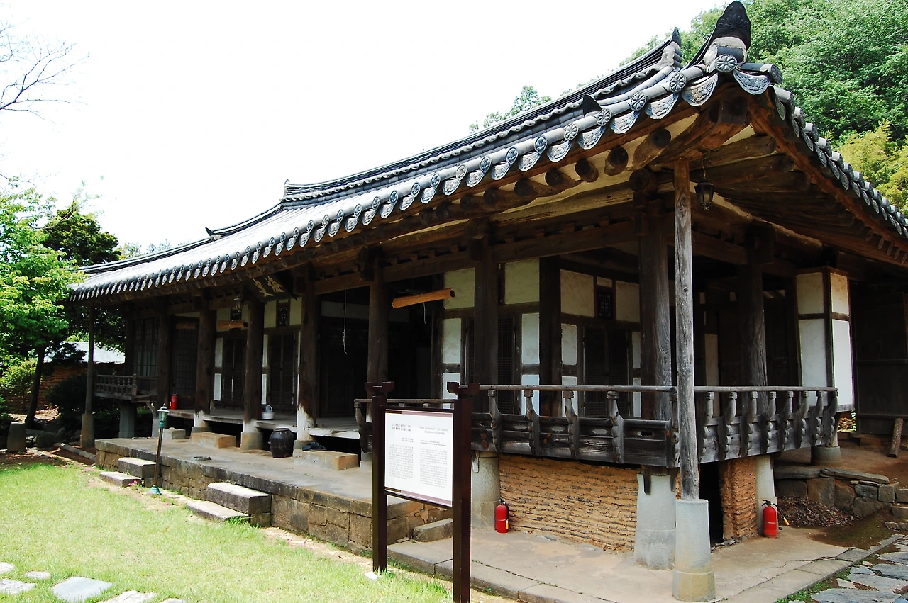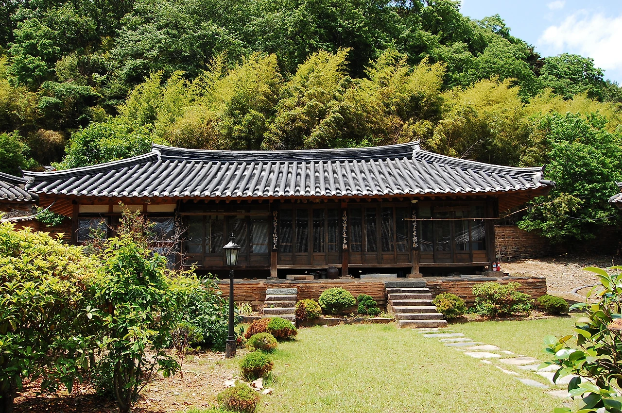 높지도 낮지도 않은 숲을 뒷배경으로 놓고 따뜻한 햇빛을 받은 안채는 흡사 누군가가 뒤에 숨겨 놓은 중요한 것이 서서히 드러나듯이 놀라운 모습을 드러낸 것입니다.