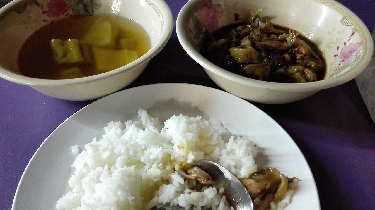 # 텅러 경찰서 앞 노천식당에서 먹은 족발과 밥. 족발에 고기는 거의 없고 비계만 잔뜩있어서 너무 맛이 없었다.