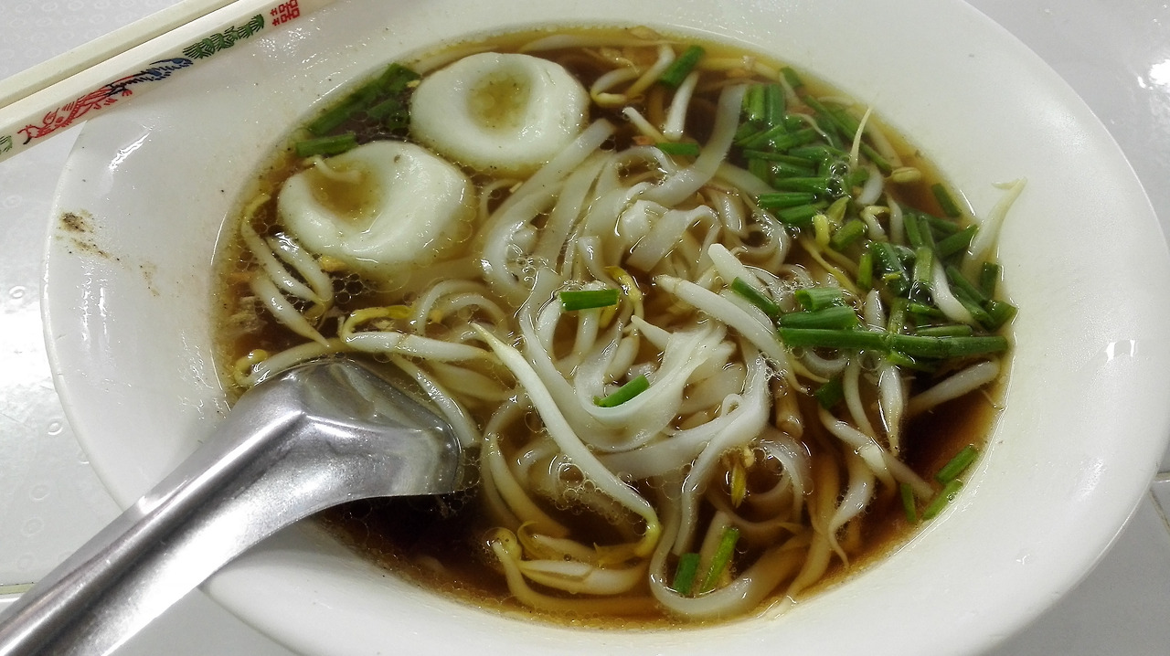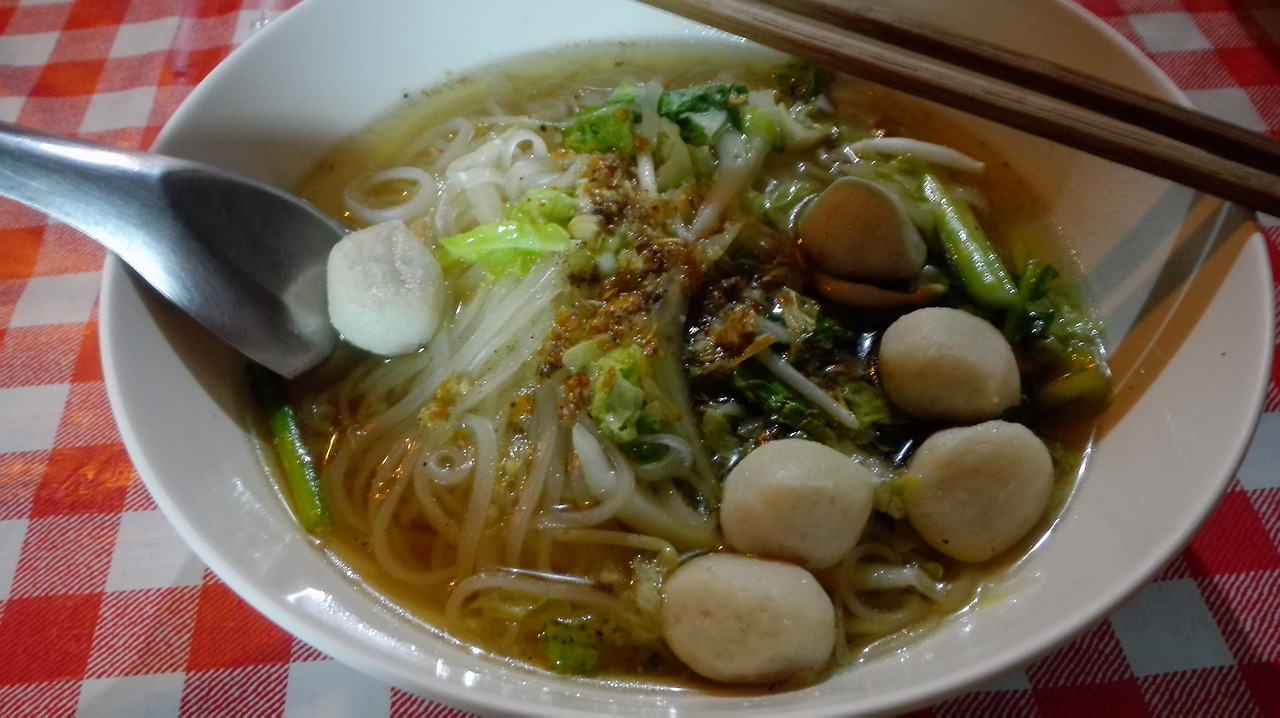 # 타패 게이트 근처 노천식당에서 먹은 어묵국수. 먹을만 했다.