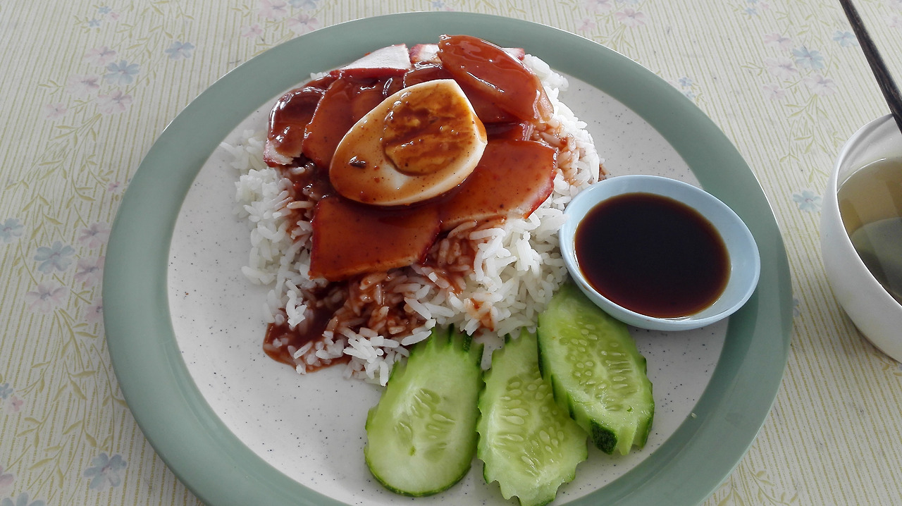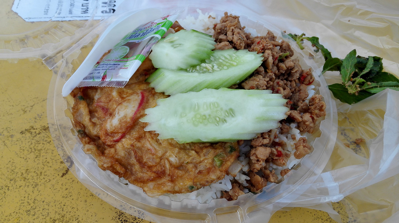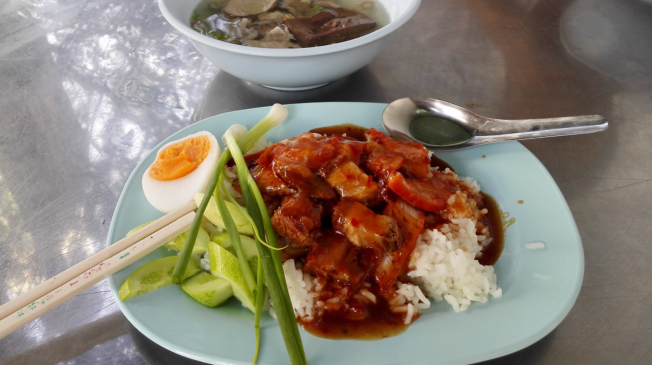 # 텅러 경찰서 앞에서 먹은 빨간소스 돼지고기 덮밥. 먹을만 했다.