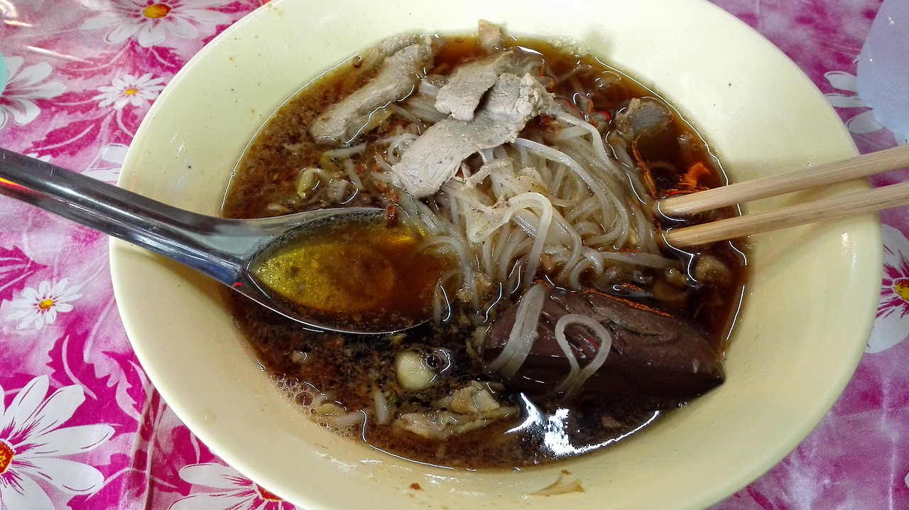 # 치앙마이 게이트 근처 남문 시장에서 먹은 국수. 아마도 선지를 넣은 것 같은데 선지를 못 먹는 나로서는 실패한 음식 ㅠㅠ