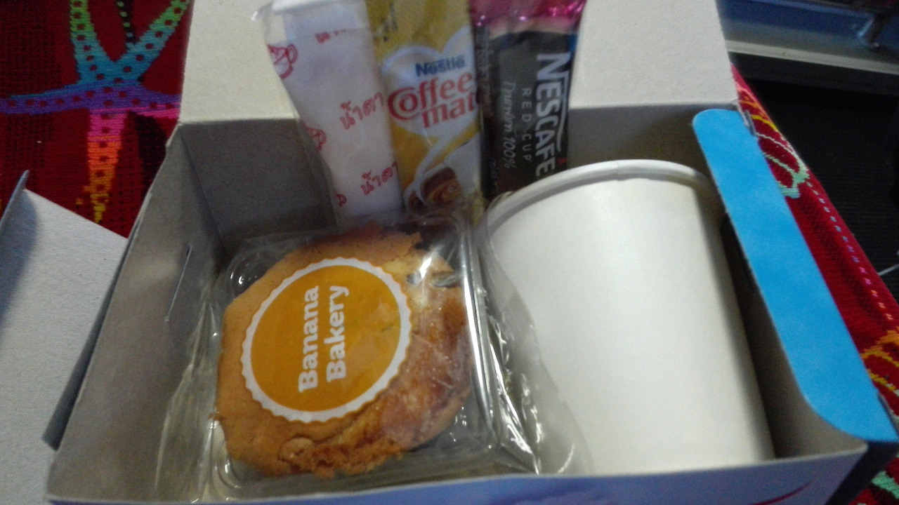 # 끄라비에서 방콕으로 가는 버스에서 나눠준 도시락 (?). 간단한 쿠키 같은 것과 커피가 들어 있다.