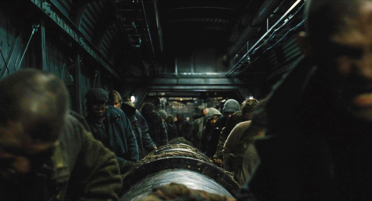 커티스(크리스 에반스)는 점호 시간에 꼬리칸, 검역 칸, 감옥 칸의 세 문이 동시에 4초간 열린다는 사실을 발견하고 대형 파이프를 연결해 공성병기를 만든다. 뜻밖에 다음 점호가 앞당겨지고, 배고픈 꼬리칸 사람들은 주먹을 내지르며 소리친다. 갈등하던 커티스는 몸소 경비의 총구를 머리에 대고 격발해 총알이 없음을 입증하며 봉기가 시작된다.