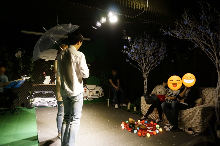 나 같은 경우는 우리의 사랑 이야기를 배우가 연극으로 표현해주고 라이브 공연도 들려주는 프러포즈 이벤트를 신청했다. 마지막에 나의 세레나데도 부를 수 있어서 한 달 동안 열심히 가사를 외웠던 기억이 난다. 아내와 내가 좋아하는 김동률 노래를 골랐고 데이트 장소에 일부러 30분 일찍 나가서 근처 코인 노래방에서 연습했던 기억도 난다.