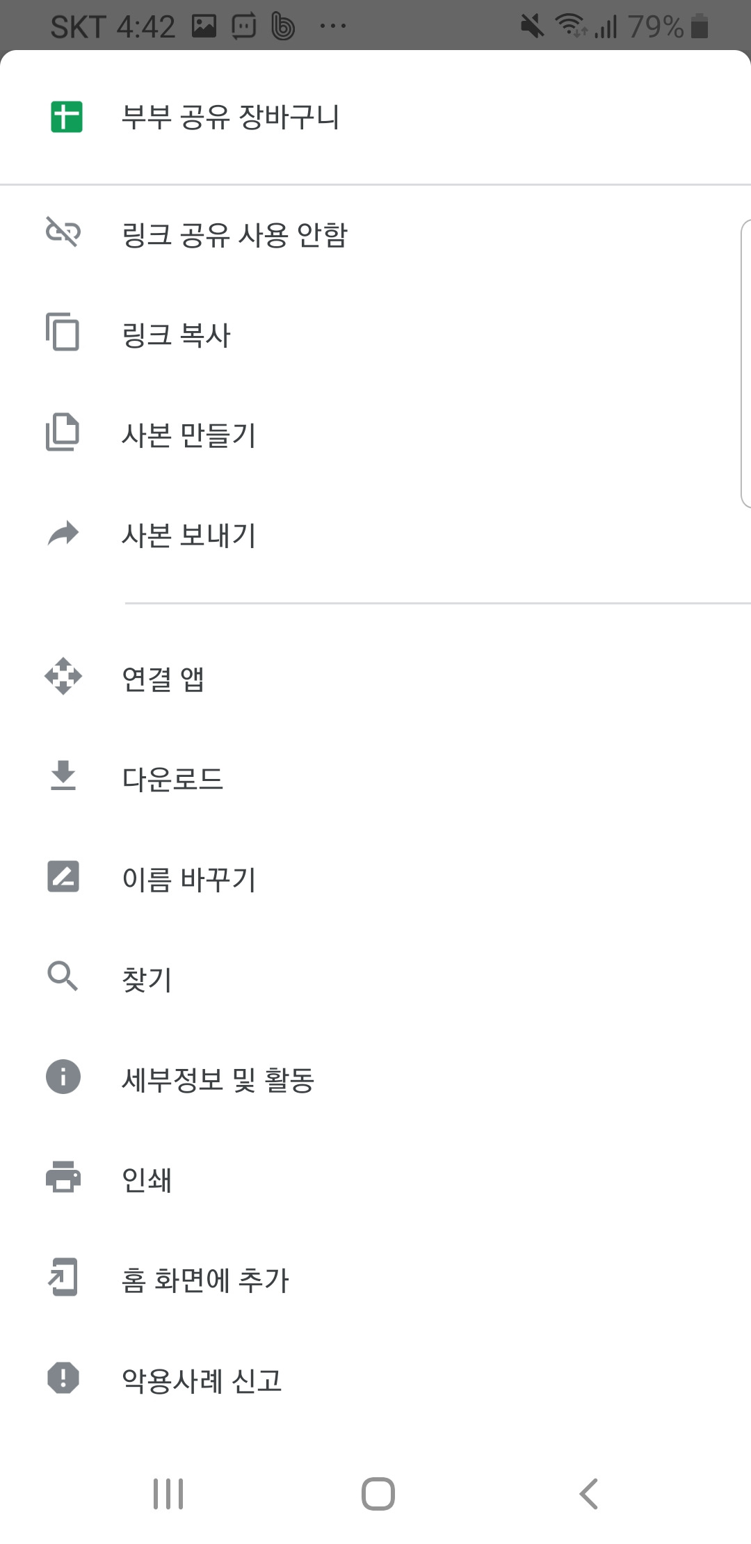 가) 구글 드라이브 앱에 들어간다. 해당 시트의 옆에 있는 점선을 누른다.