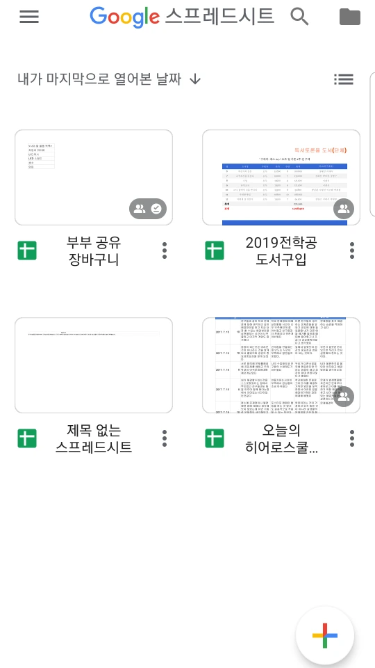 1. 구글 스프레드시트 앱을 켠다.