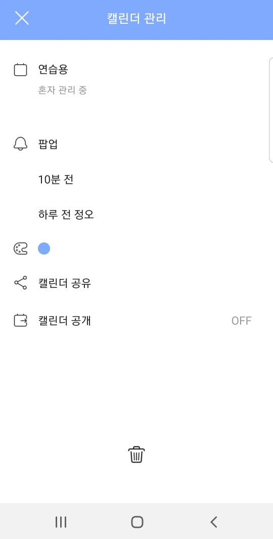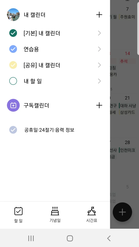 2. 공유할 캘린더를 터치하면 위의 창이 뜬다. 캘린더 공유를 누르고 상대를 선택한다.