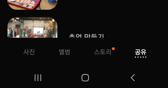 2. 아래 메뉴 창을 보면 사진, 앨범, 스토리, 공유로 구성되어 있다.