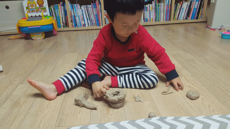 현재 집에서 쓰고 있는 찰흙은 마르지 않아서 잘 쓰고 있습니다. 굳이 단점을 따지면 만질수록 손에 약간 기름기가 배는 정도입니다. 장난감을 사줘도 1주일은커녕 이틀을 가지고 놀지 않는 현실 속에서 찰흙은 하루에 한 번 이상 가지고 노는 최고의 장난감이 되었습니다. 손톱에 끼지 않도록 단정하게 아기 손톱을 잘랐다면 이제 시작!