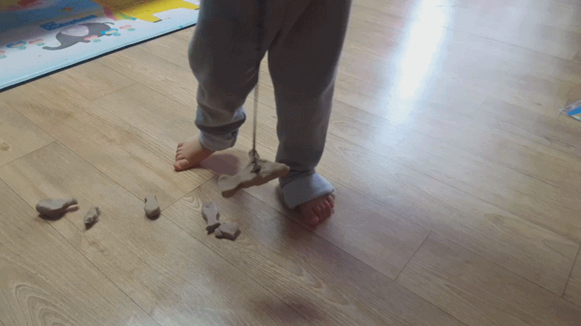 게 민 찰흙은 자명종 놀이나 그네 놀이도 됩니다. 길게 민 찰흙 끝에 동그란 찰흙을 붙이고 좌우로 흔들어서 똑딱똑딱 시계를 해줬는데 세대 차이 때문인지 그다지 관심을 끌지 못했습니다. (아;;;) 대신 그네를 만들어서 흔들어주니 좋아했습니다.