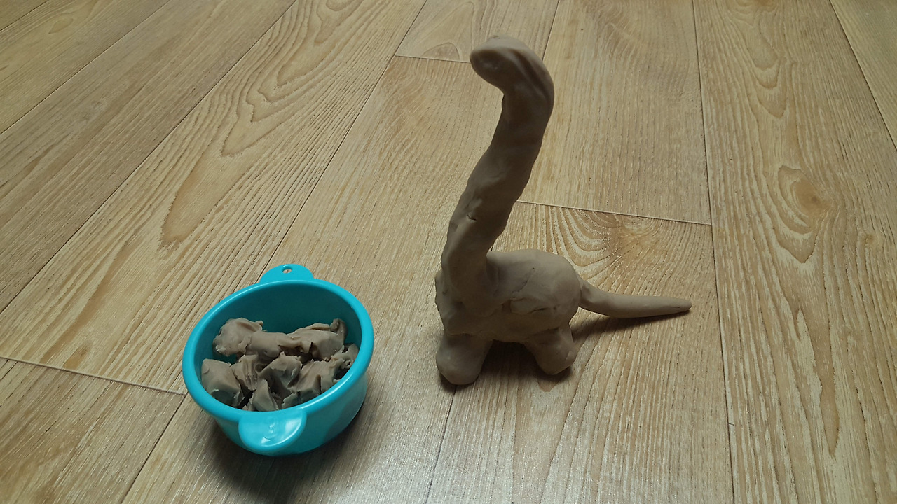 냥이는 공룡을 좋아해서 공룡도 만들었고 길게 말아준 찰흙으로 코끼리를 함께 만들기도 했습니다. 그냥 길게 말으면 뱀이 되기도 하고 지렁이가 되기도 합니다. 오늘 보았던 것을 같이 만들어 보는 것도 좋습니다.