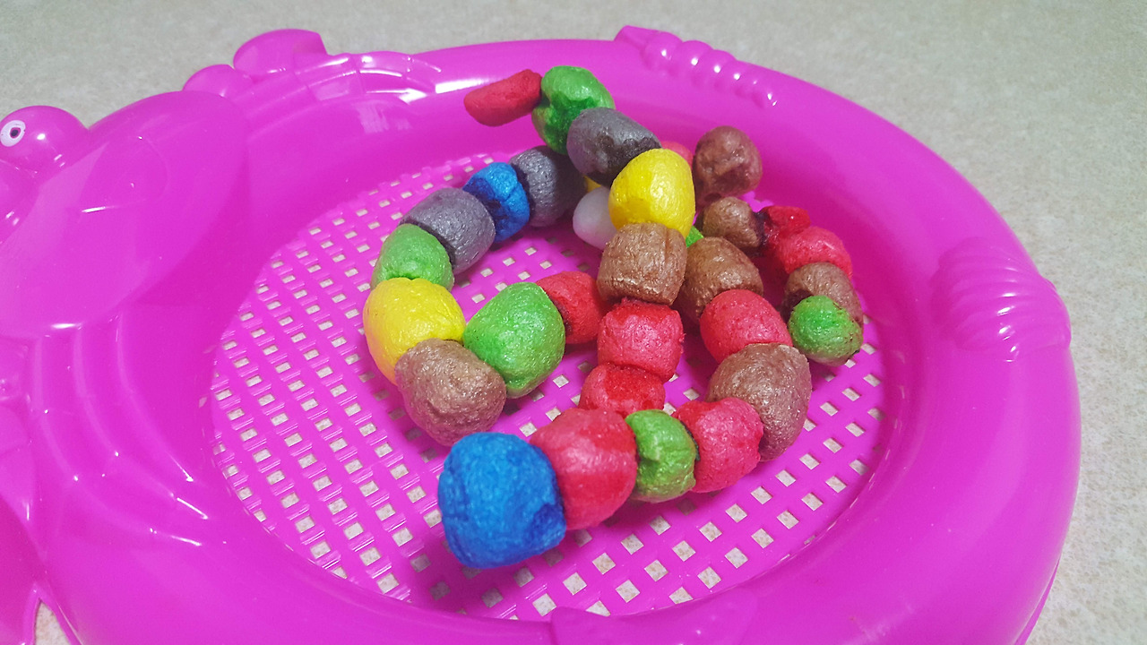 폭신폭신한 재질로 옥수수전분과 식용색소가 들어있다.