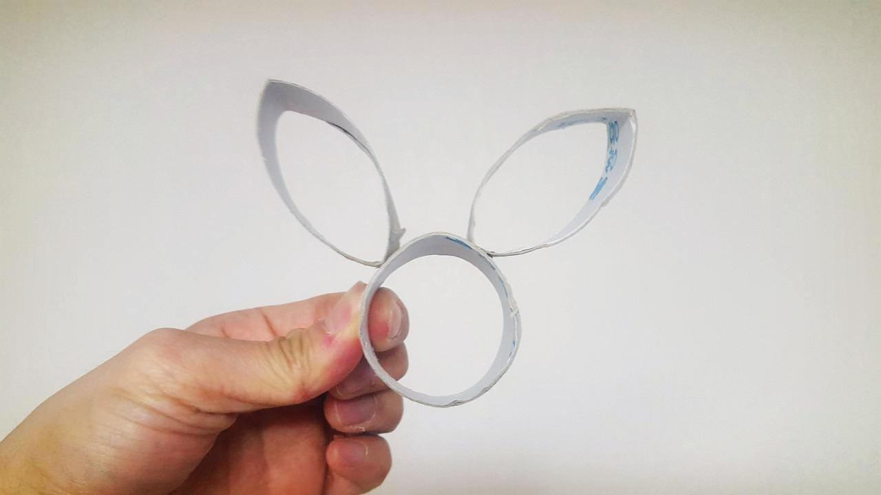 순서 3. 원형 휴지심에 나머지 두 개의 귀 모양을 글루건으로 붙여줍니다.