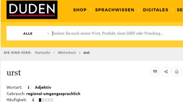 ㅣ 독일어사전에서 찾은 동독말 urst. 대단한, 멋진이란 뜻을 가진 형용사로 '지역 일상어'라고 나와있다 ㅣ