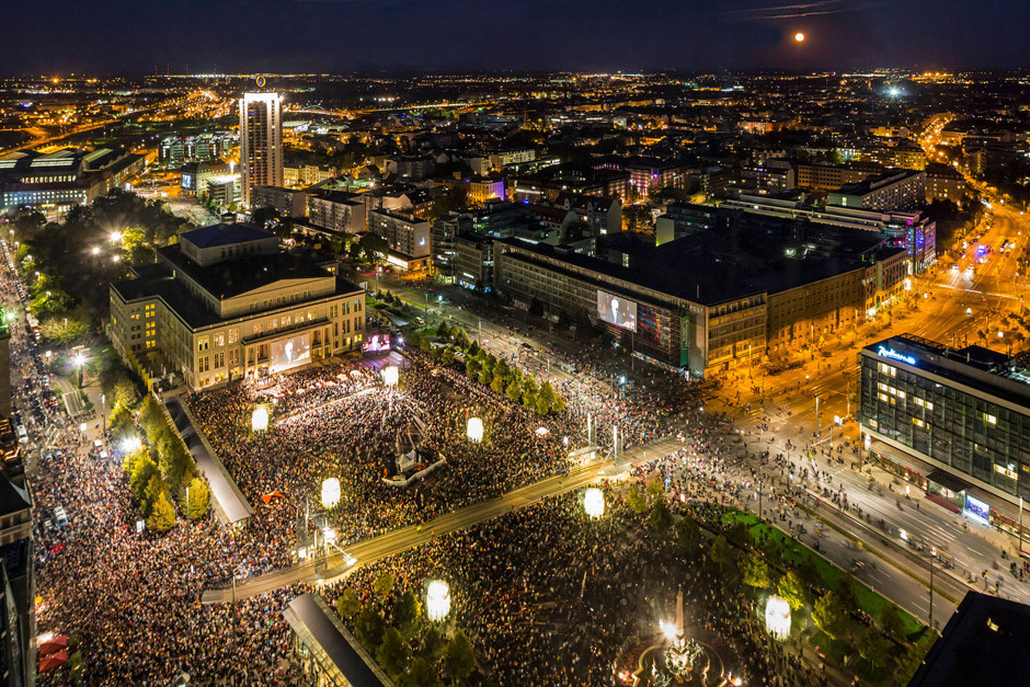 유독 이맘때가 되면 추적추적 비가 내리고 거리의 공기도 싸늘해지는 것 같다. 오늘은 10월 9일. 저녁에 옷깃을 단단히 여미고 친구들과 라이프치히 시내의 아우구스투스 광장(Augustusplatz)으로 나섰다. 찬기운 탓인지 대기의 습한 공기가 땅위에 내려앉아 몽글몽글한 이슬방울로 맺혀있었다. 거리는 광장으로 향하는 사람들의 발걸음으로 분주했다. 아우구스투스 광장에 들어서니 이미 많은 사람들로 광장은 가득 차 있었고, 사람들은 불 밝힌 초를 하나씩 손에 들고 서있었다. 라이프치히 시민들은 매년 10월 9일 이렇게 광장에 모여 빛의 축제(Lichtfest)를 맞는다. 1989년 10월 9일 라이프치히에서 일어난 평화 혁명을 기념하기 위해서다.