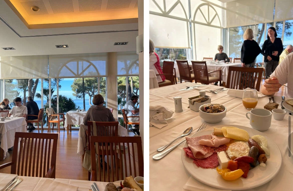 마요르카의 숙소는 큰 수영장과, 아침이 포함된 럭셔리해 보이는 리조트로 정했는데, 가격이 다른 곳들과 비교해 저렴해서 선택하게 되었다. 하지만 시내와 많이 떨어진 곳에 있었기에 가격이 저렴하다는 사실을 도착해서 깨달았다. 1시간을 달리고 도착한 리조트는 말 그대로 너무 좋았다. 늦은 저녁이었음에도 불구하고 크나큰 외관과 럭셔리한 내부가 우리 마음을 사로잡았다. 조식 역시도 아기와 먹기에 훌륭했고, 신혼여행지였던 몰디브를 생각나게 할 정도로 이국적인 풍경과 바다를 즐길 수 있었다.