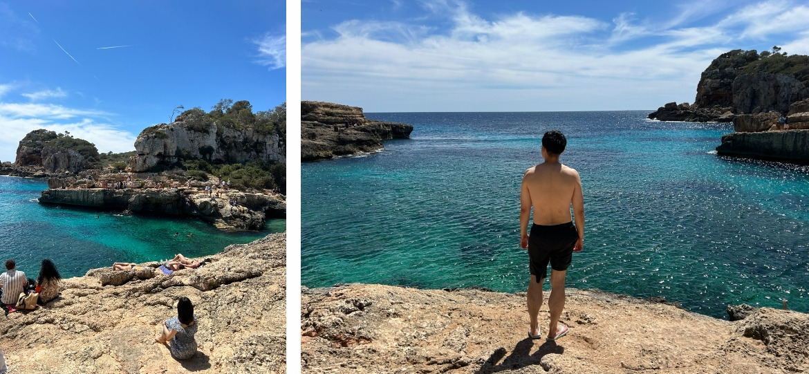 숙소에서만 머무르며 느긋이 즐길 수도 있었을 텐데, 가만히 있지를 못하는 우리는 칼로 데스 모로 Calo des moro라는 관광지정도만 보자고 결정했다. 날씨는 최고 기온이 25-27도 정도 되어 햇볕이 조금 강하지만 불쾌하지는 않은 정도였기 때문에 관광객들이 태닝과 수용을 즐기러 많이 나와 있었다. 이곳에 도달하려면 가파른 계단을 내려가야 하는데, 아기를 안고 갈 수 있을지 백만 번 고민했었던 것 같다. 아기를 데리고 내려가는 여행객들도 조금 보이고, 난간이 있기에 조심하며 내려가기로 결정했지만 가는 도중 조금 무서웠던 것은 사실이다. 나는 아기를 안고, 남편은 유모차를 들었는데 혹여라도 사고가 생길까 매우 매우 조심했다.