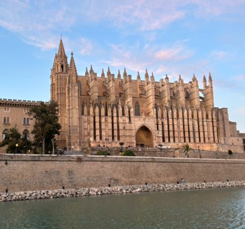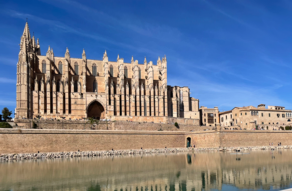 여기까지 하고 욕심을 부리면 안 됐는데, 조금의 행복을 더 맛보고 싶어진 우리는 팔마 시내까지 가서 둘러보고, 또 기회가 되면 아울렛까지 시도하기로 했다. 여기도 역시나 교통체증이 있었고, 예상시간보다 훌쩍 넘어 시내에 도착해 아울렛은 고사하고, 시내만 둘러보기로 하였다. 팔마 대성당 Cathedral of Santa Maria of Palma 이 크게 자리 잡고 있었는데, 가우디가 일부 디자인한 건축물로 바로 앞에 자리한 연못가에 비친 광경이 참 아름다웠다. 햇빛이 강렬했던 낮과는 달리 밤이 되니 슬슬 추워지기 시작했고, 아기는 배가 고파 칭얼거리기 시작했다. 저녁은 생각하지도 않았는데, 비상이다.