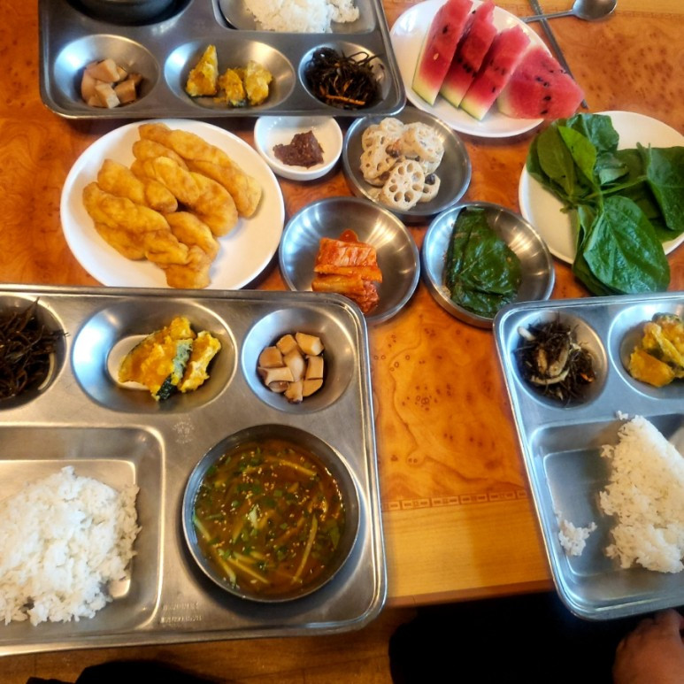 토요일 하체 운동한 걸 잊었다. 절할 때마다 허벅지가 당겼다. 속에서 뭔가 올라왔다. 108배를 겨우 했다. 불공이 끝나고 점심공양을 하는데, 냉국만 두 번 떠다 먹었다. 속에 뭔가 들어가니 살 것 같았다. 술 마신 다음 날 절에 가는 건 역시 아니다.