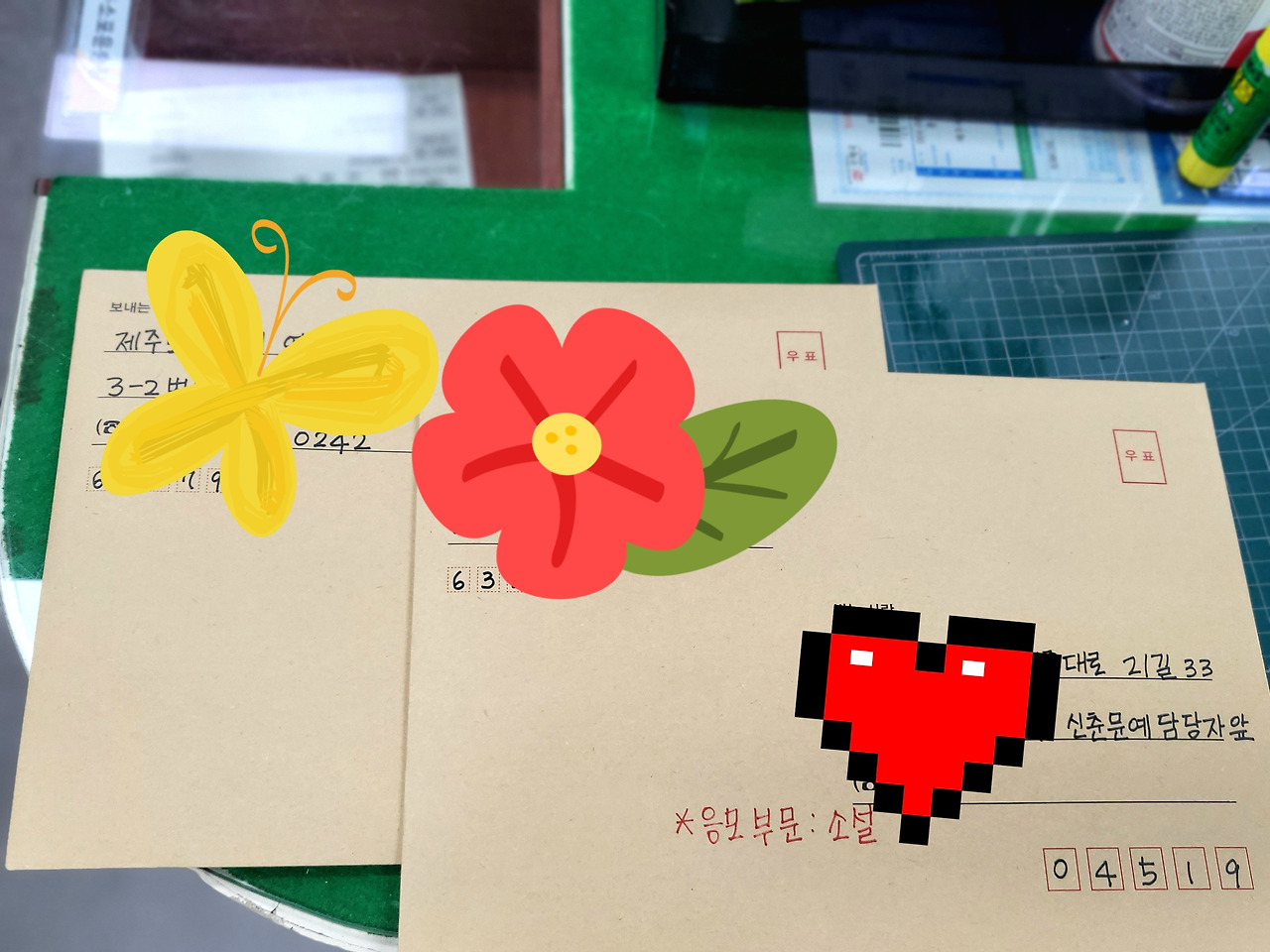 그때 블로그이웃님이 작가님을 소개해줬다. 작가님 덕분에 나는 두 편의 단편소설을 완성시켰다. 그리고 오늘 신춘문예 담당자 앞이라고 적고 우편을 보냈다.