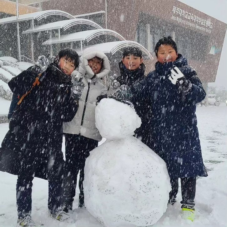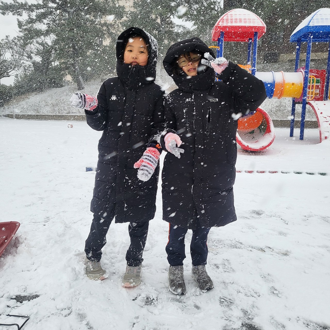 집에 있는데 같은 반 엄마가 사진을 보내왔다. 빨개진 얼굴로 친구들과 사진을 찍은 아들이 활짝 웃고 있었다. 신발이 젖든 말든 손이 시리으면 호호 불면서 두 볼이 빨개져도 마냥 좋은 아이들.