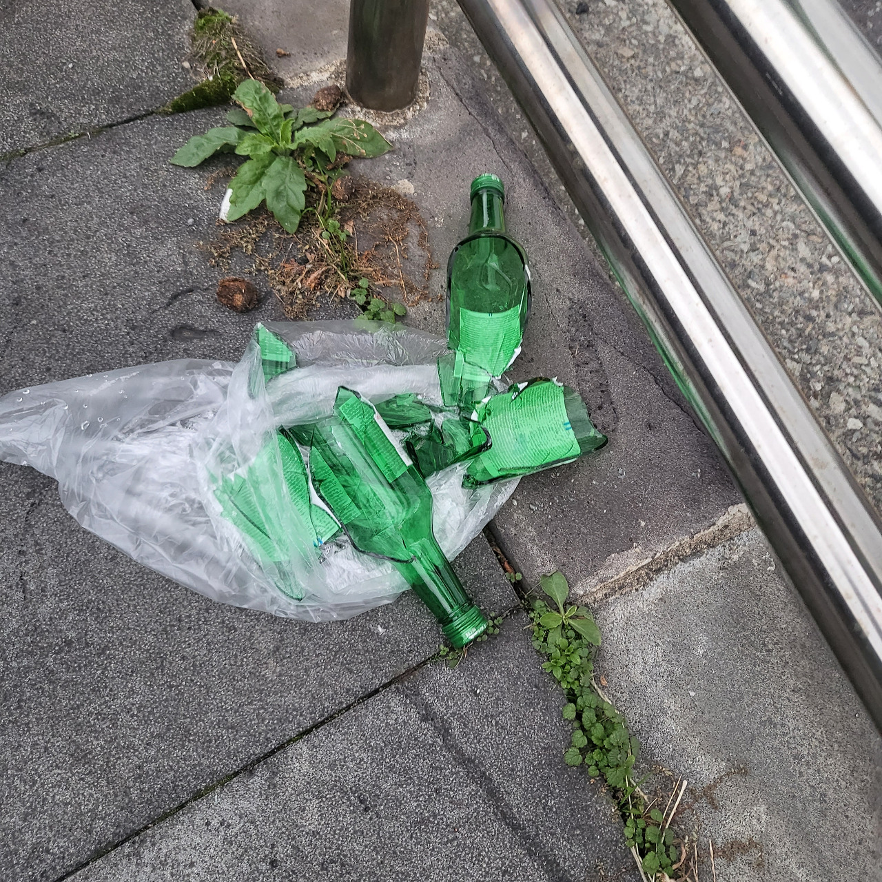 어제 일이다. 아이들을 픽업하기 위해 주차장으로 가고 있었는데 큰 길옆에 있는 인도에 깨진 소주병 두 병이 있었다. 내리쳐서 깨졌는지 병 하나는 반이 산산조각 나서 인도에 가득 차 있었고, 하나는 반으로 잘려서 몹시 날카로웠다. 초등학교 옆의 인도였고, 아이들이 많이 다니는 길이었다.