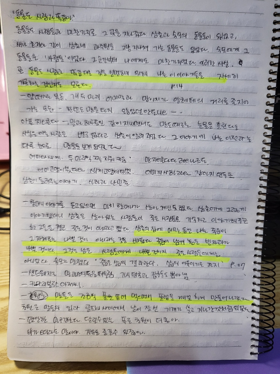 140페이지의 책은 짧고 쉽게 읽혔다. 그럼에도 불구하고, 오늘 하루를 보냈던 건 필사할 부분이 너무
