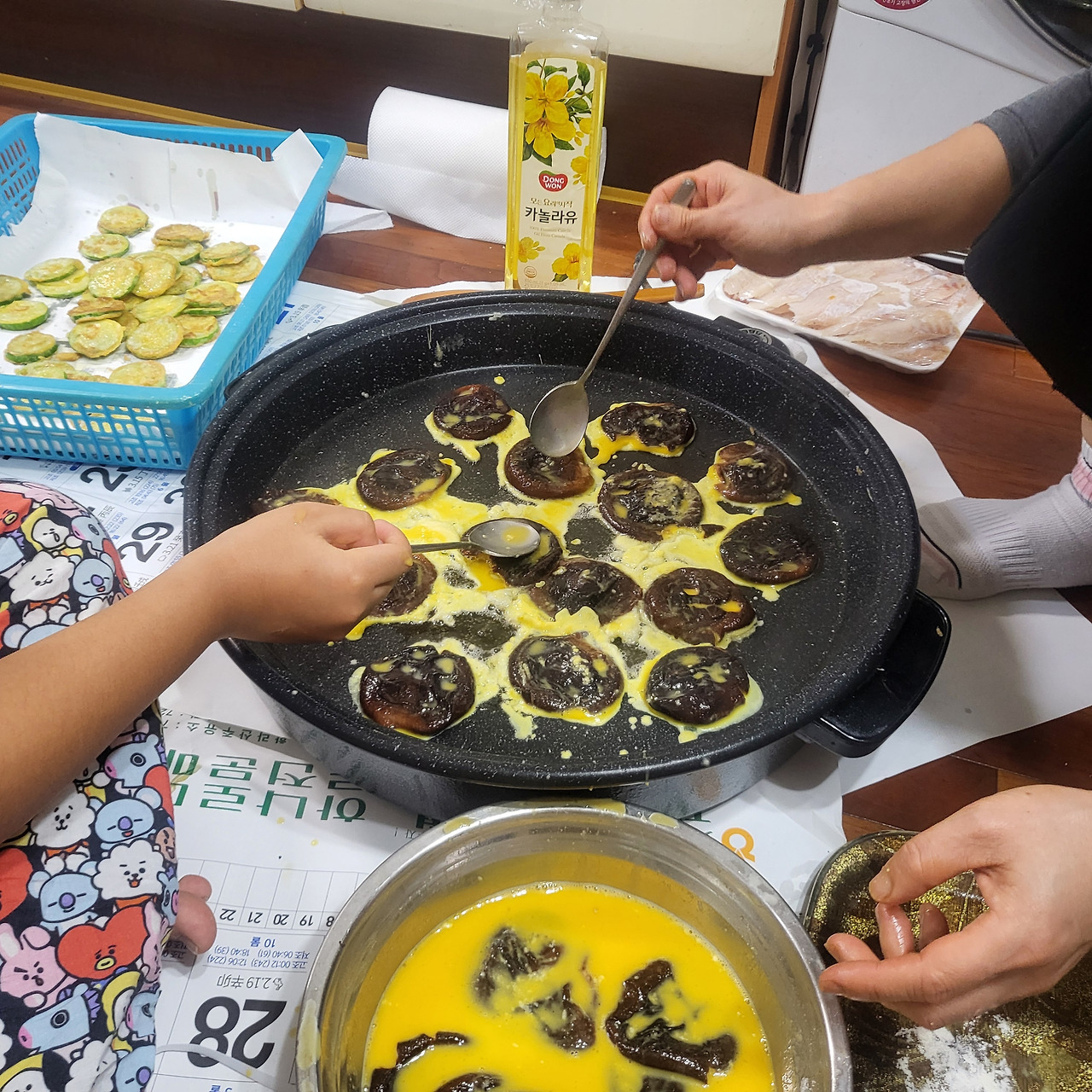 아이들이 준비하고, 제가 전을 부치고 있었습니다. 옆에 앉아 있던 아들이 물었습니다.