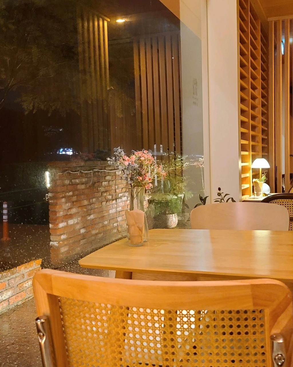 낮은 조명, 테이블마다 놓여 있는 유리화병에 예쁜 꽃들(생화가 아니어서 아쉬웠지만), 잔잔한 음악, 상대에게 몸을 기울이고 이야기를 나누는 사람들.
