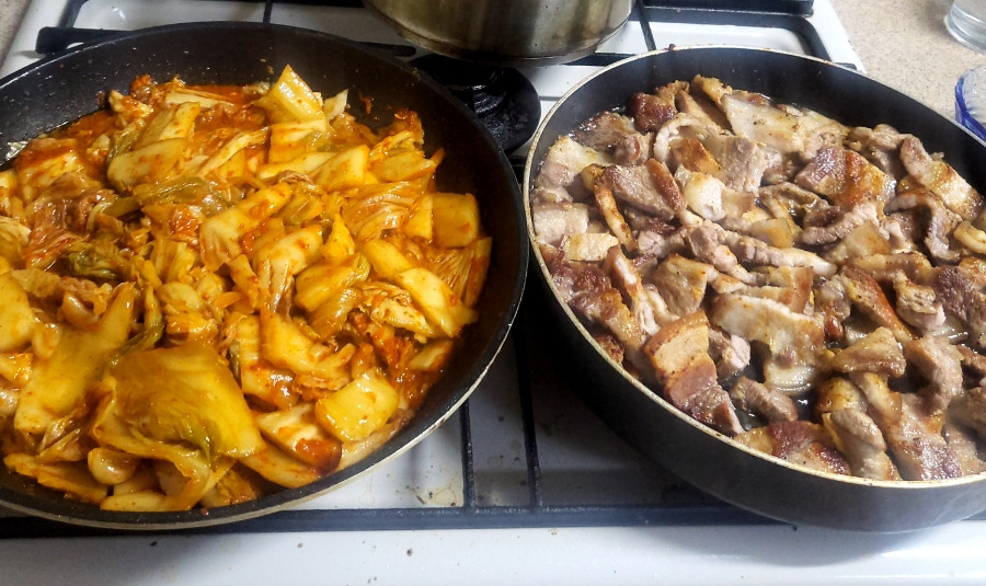 집에 오자마자 고기를 사다 구웠다. 다음 날 3박 4일 수학여행 가는 큰 딸과 1박 2일 인성 수련을 가는 아들을 위해 우리 가족이 제일 좋아하는 삼겹살과 구운 김치를 대령했다. 다른 요리를 하고 싶어도 식구들이 고기만 외치니 방도가 없다. 사실 고기 굽는 게 제일 쉬운 건데. 이럴 때는 고맙다고 해야 할지 어떤지.