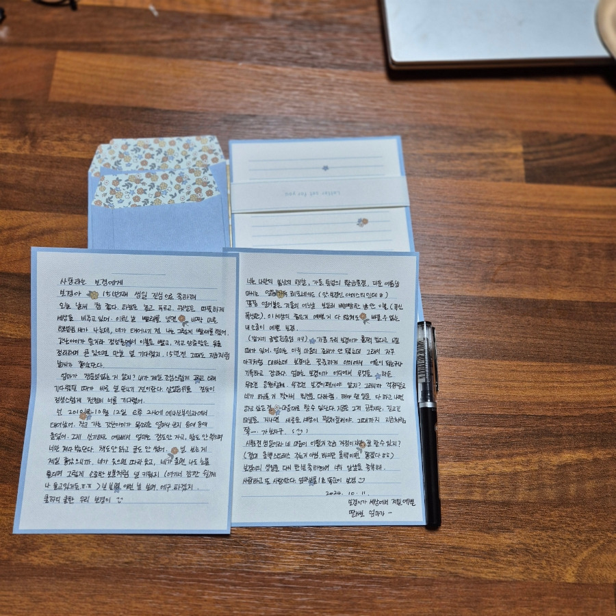 아이들이 학교에 가고, 청소를 마친 후, 거실에 앉아, 큰 딸에게 편지를 썼다. 내일 생일이지만, 일정이 빡빡해서 오늘 저녁에 생일파티를 하기로 했다. 초등3학년인 막둥이는 직접 편지지와 봉투를 만들어 썼는데, 손재주가 없는 나는 다이소에서 산 천 원짜리 편지지에 글을 썼다.
