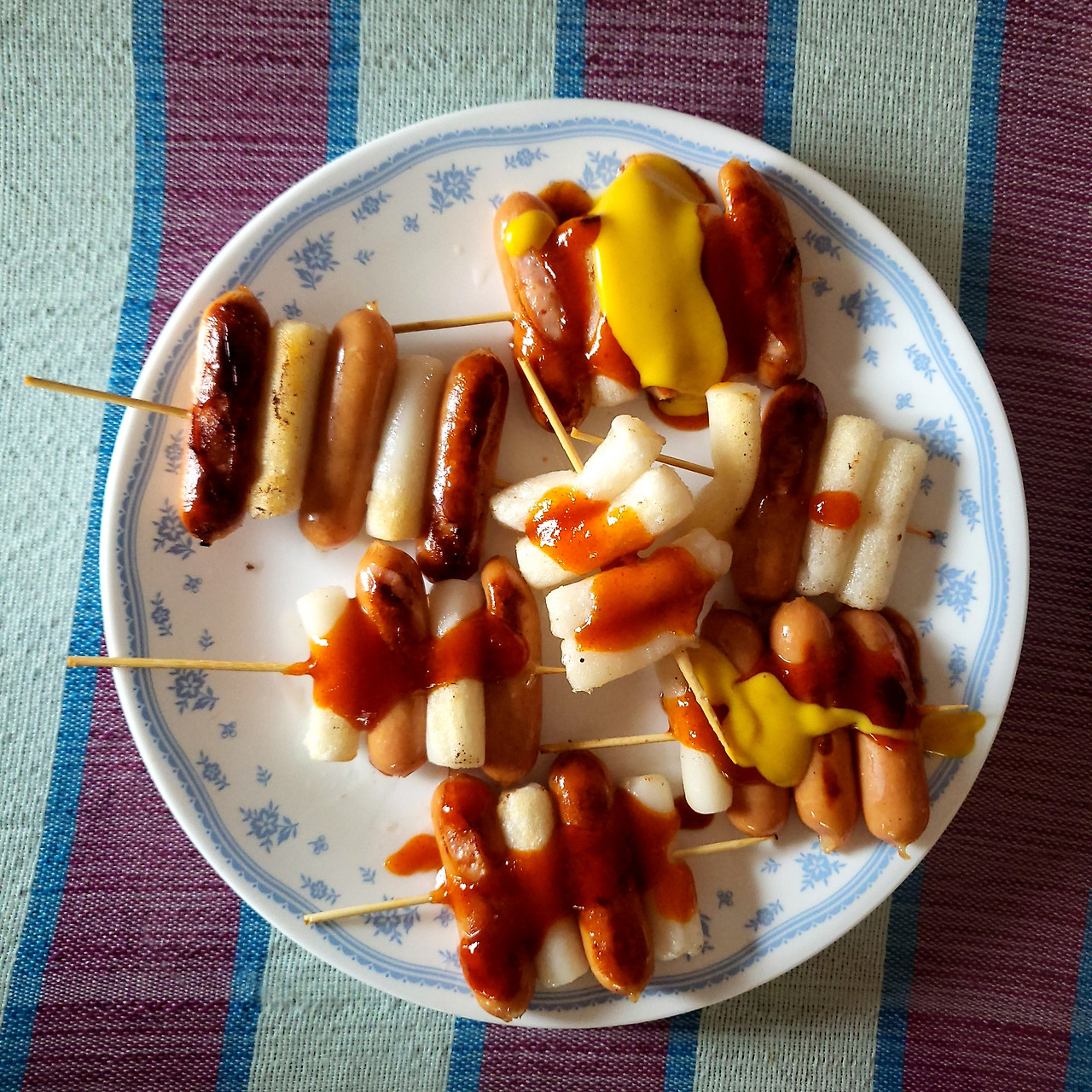 큰 딸은 떡떡 떡떡이다. 아들은 쏘쏘쏘떡이다. 막둥이는 쏘떡쏘떡이다. 나는 쏘떡쏘떡쏘다. 소시지가 하나 남아서 끼웠다고 한다. 네 사람이 먹는데 취향이 제각각이다.