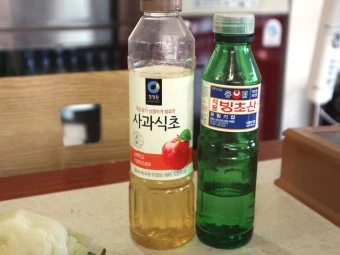 그때 아빠가 빙초산을 가지고 온다. 엄마가 물을 부으면 아빠가 빙초산을 몇 방울 떨어뜨린다. 우리 집에는 큰 유리병에 빙초산이 있었다. 자리물회에는 이상하게 빙초산이 들어가야 맛이 난다. 맛이 완성된다.