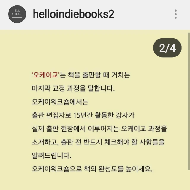 혼자 책을 만들어봐서 오케이교의 필요성을 더욱 잘 알기에 저도 고수님께 한수 배우러갑니다. 언젠가 될지 모르지만 내 이름을 달고 세상에 나오는 두번째 책이 조금 덜 부끄럽길 바래요ㅠ 책 준비하신분들 많은 관심부탁드립니다.
