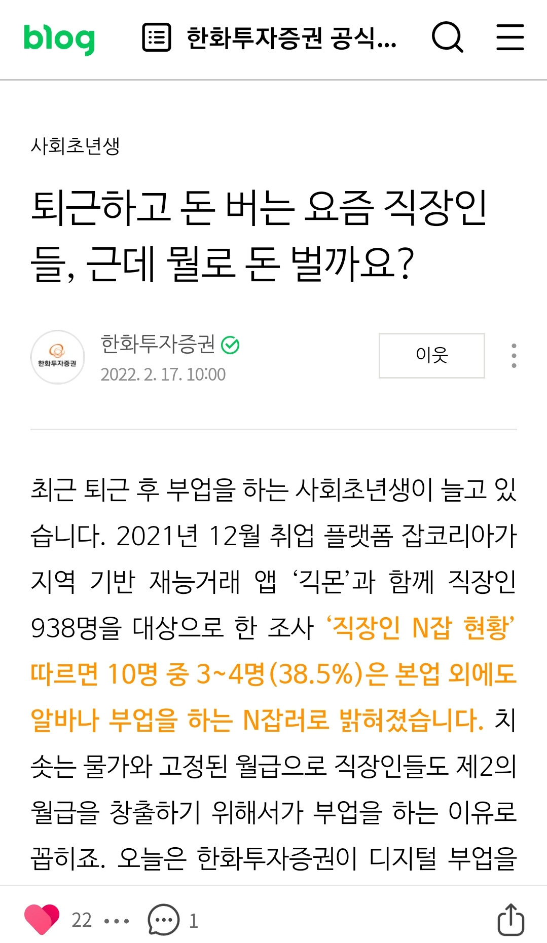 최근 퇴근 후 부업을 하는 사회초년생이 늘고 있습니다. 2021년 12월 취업 플랫폼 잡코리아가 지역 기반 재...