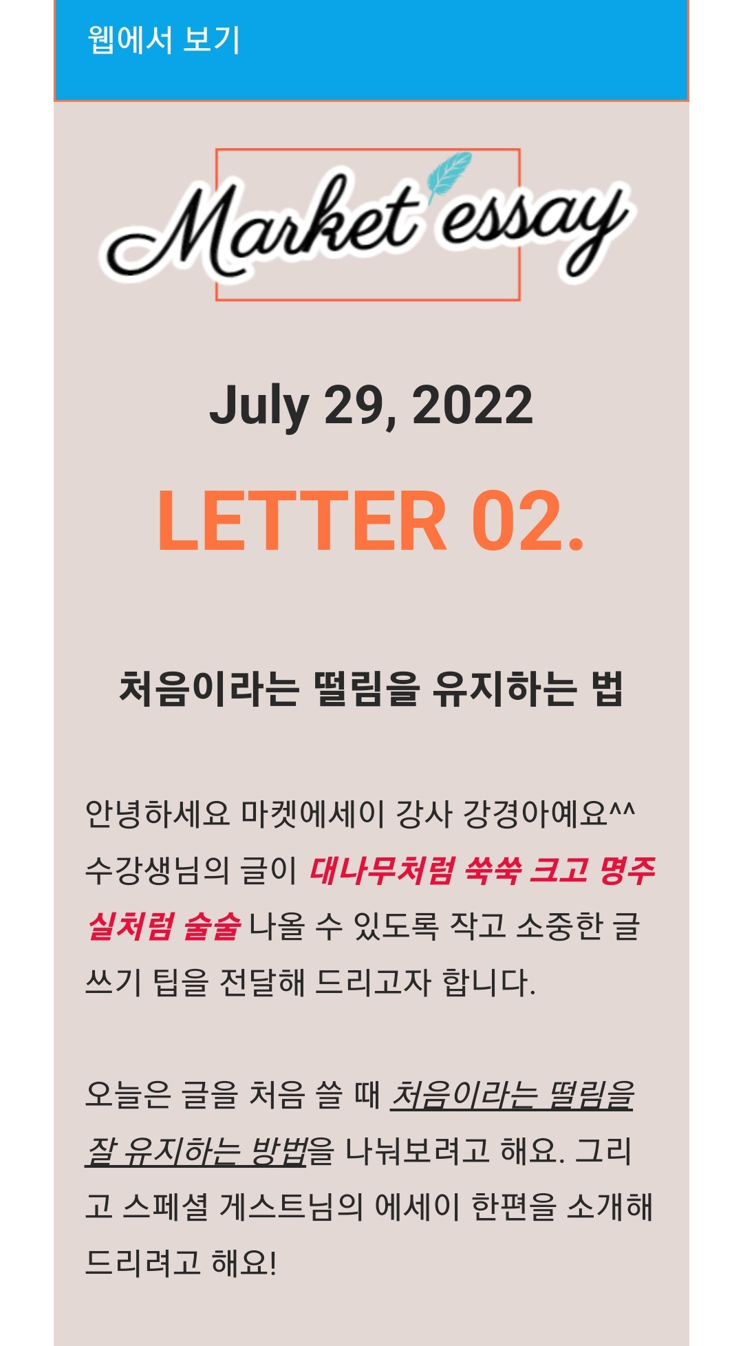 마켓 에세이 레슨 레터