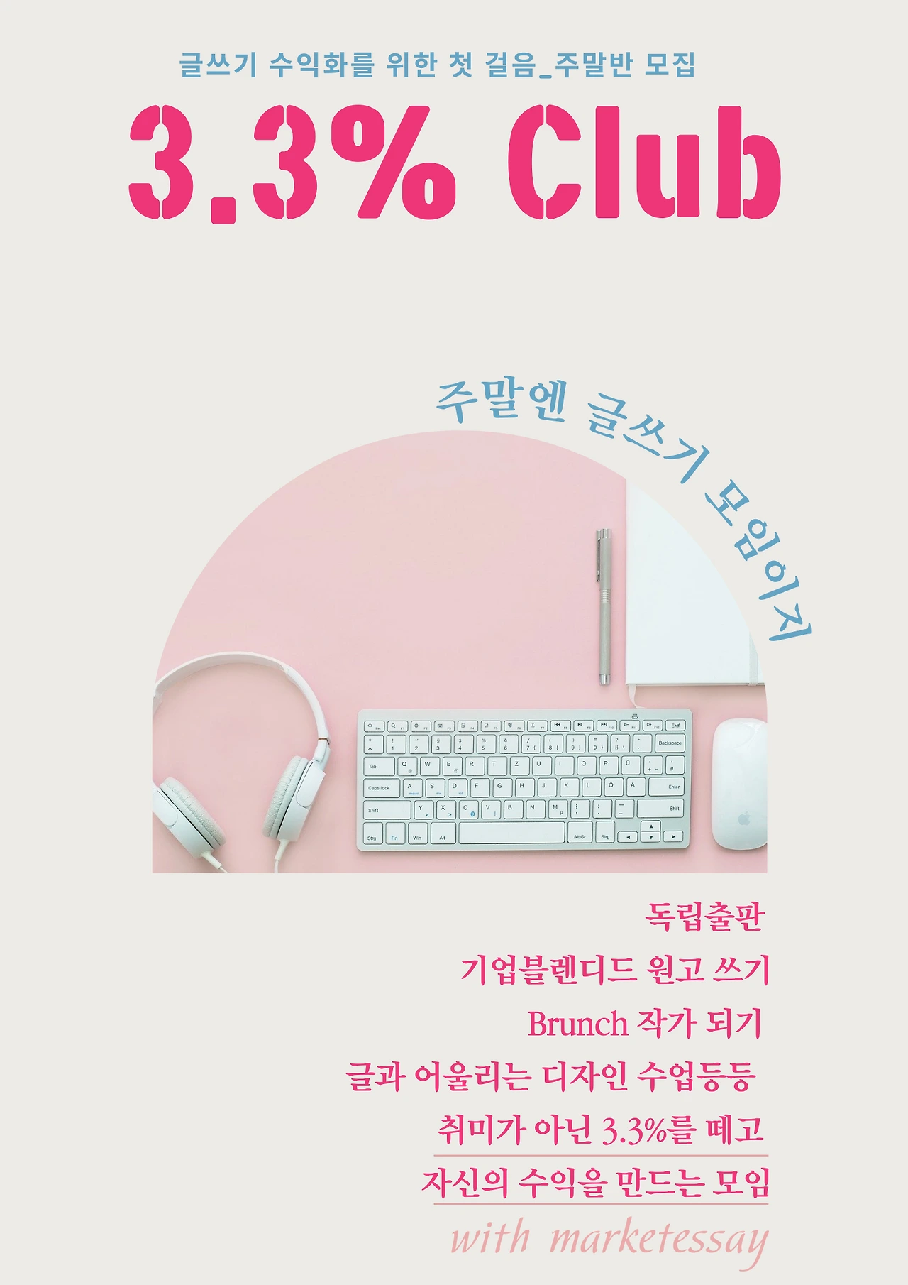 안녕하세요 오늘은 글쓰기 수익화를 위한 첫걸음 3.3% Club 주말반을 모집합니다. 직장인분들의 문의가 있...