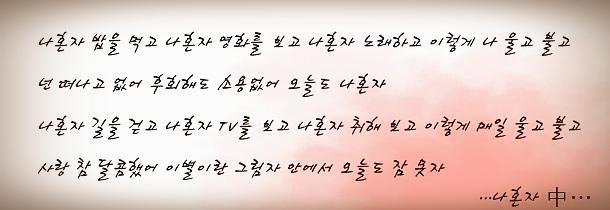 8개월 동안 나 혼자 밥을 먹고 나 혼자 영화 보고 나 혼자 쏘다니고 온갖 것을 다하고 나니 앞으로도