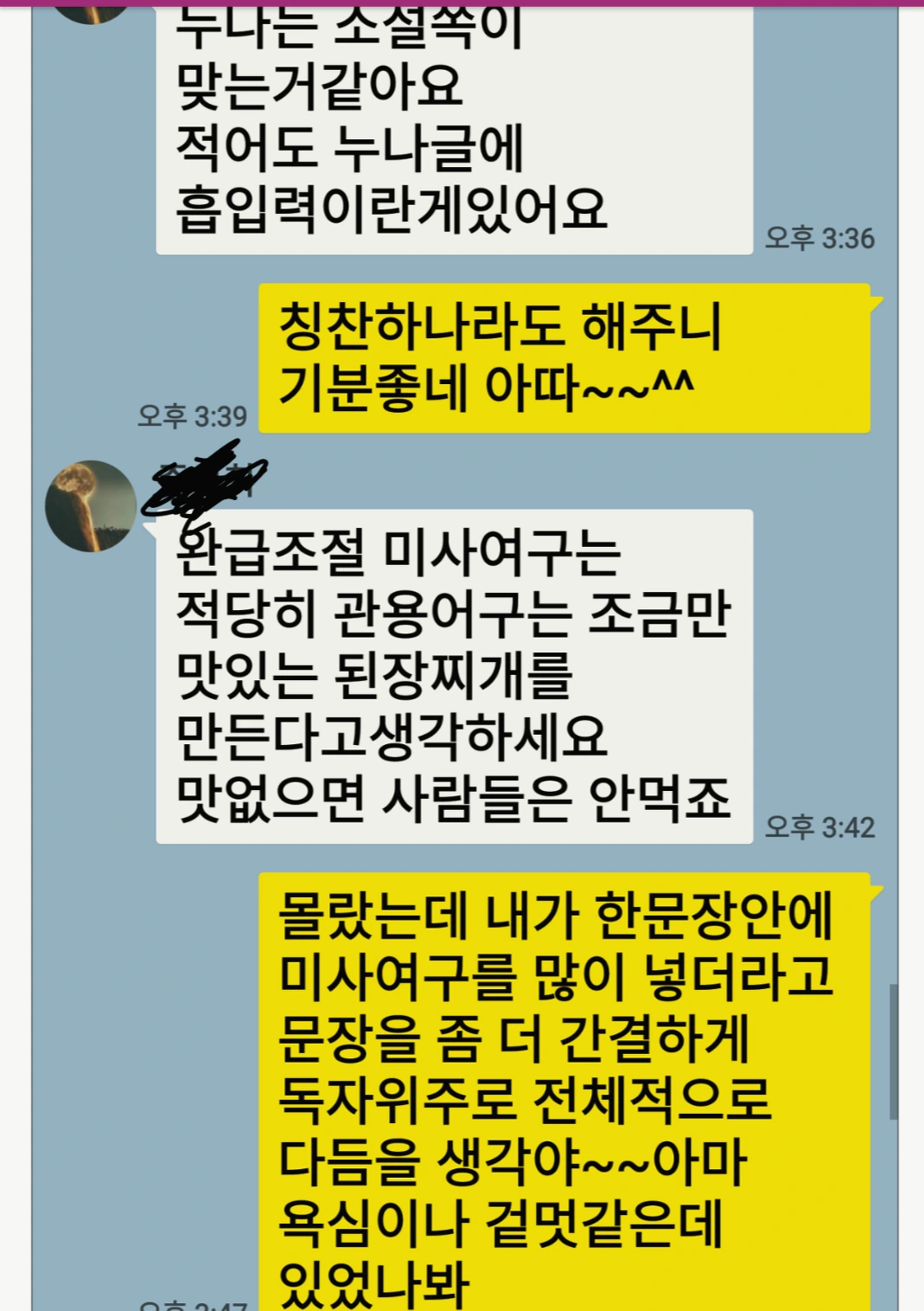 시나리오작가님께서 이런 피드백을 줬네요